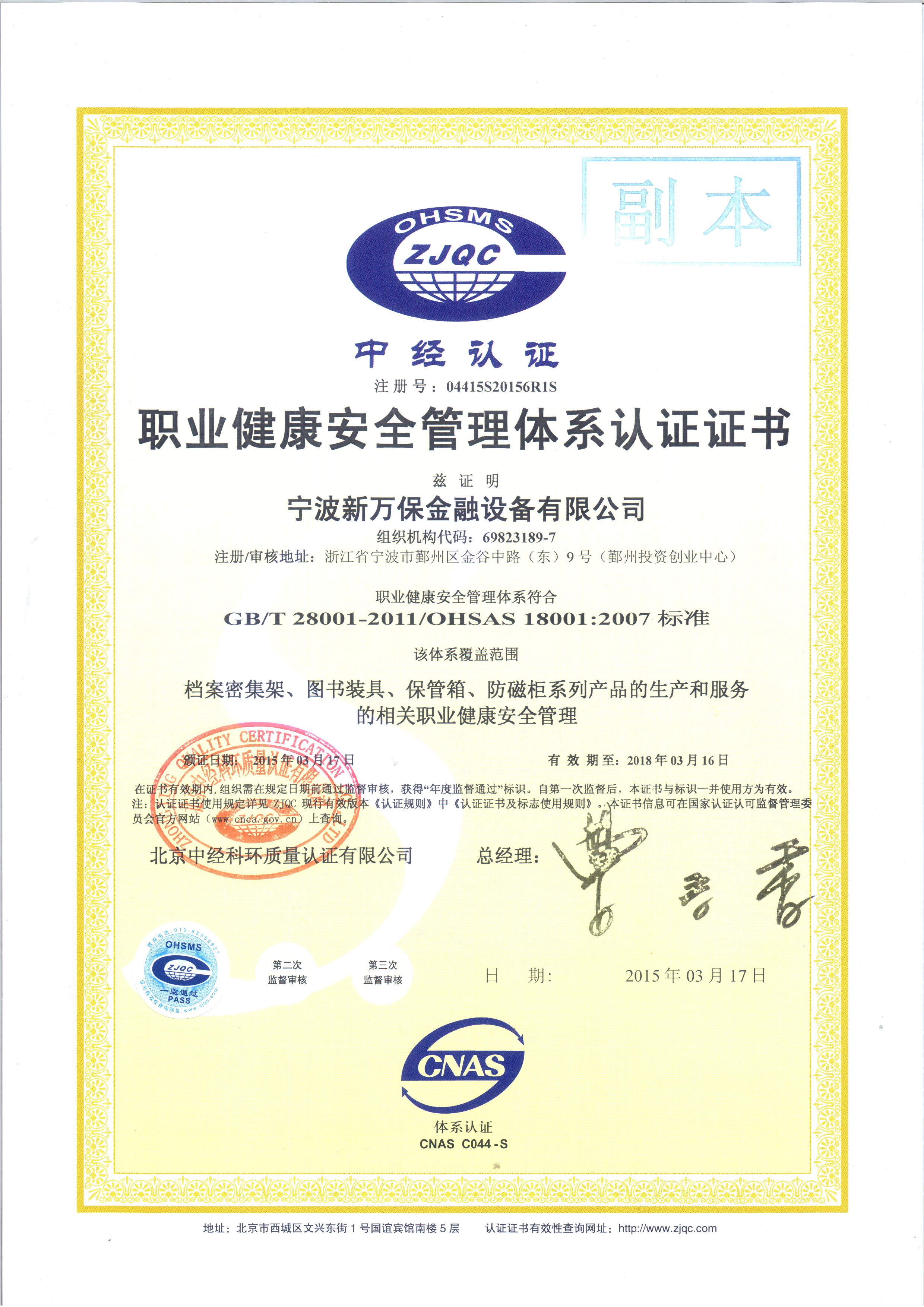 職業(yè)健康體系認(rèn)證證書(shū)